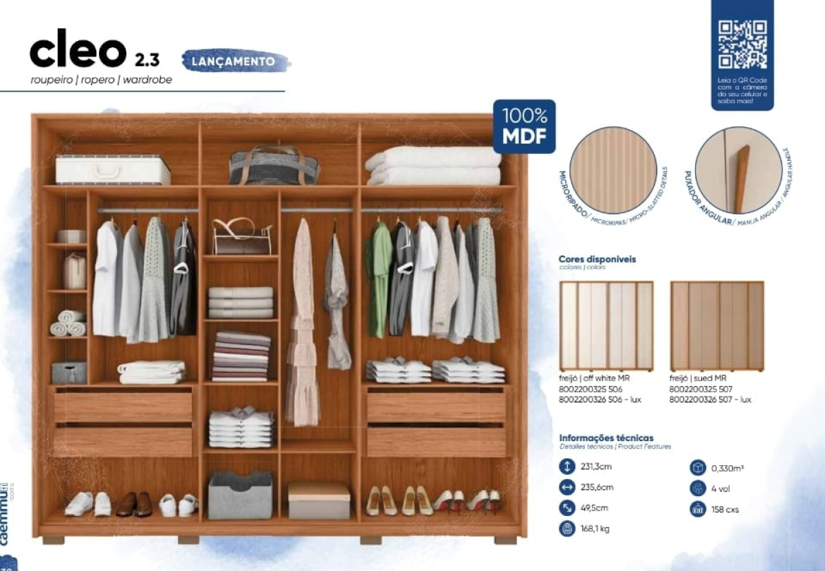 Roupeiro Cleo Cor Freijó/ Off White e Fr...