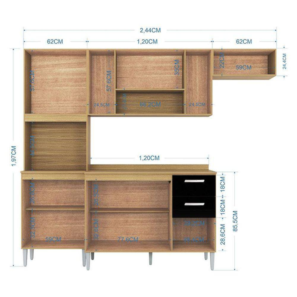 Cozinha Compacta Elisa 10 Portas 2 Gavetas Damasco/off White Cor Marrom-claro