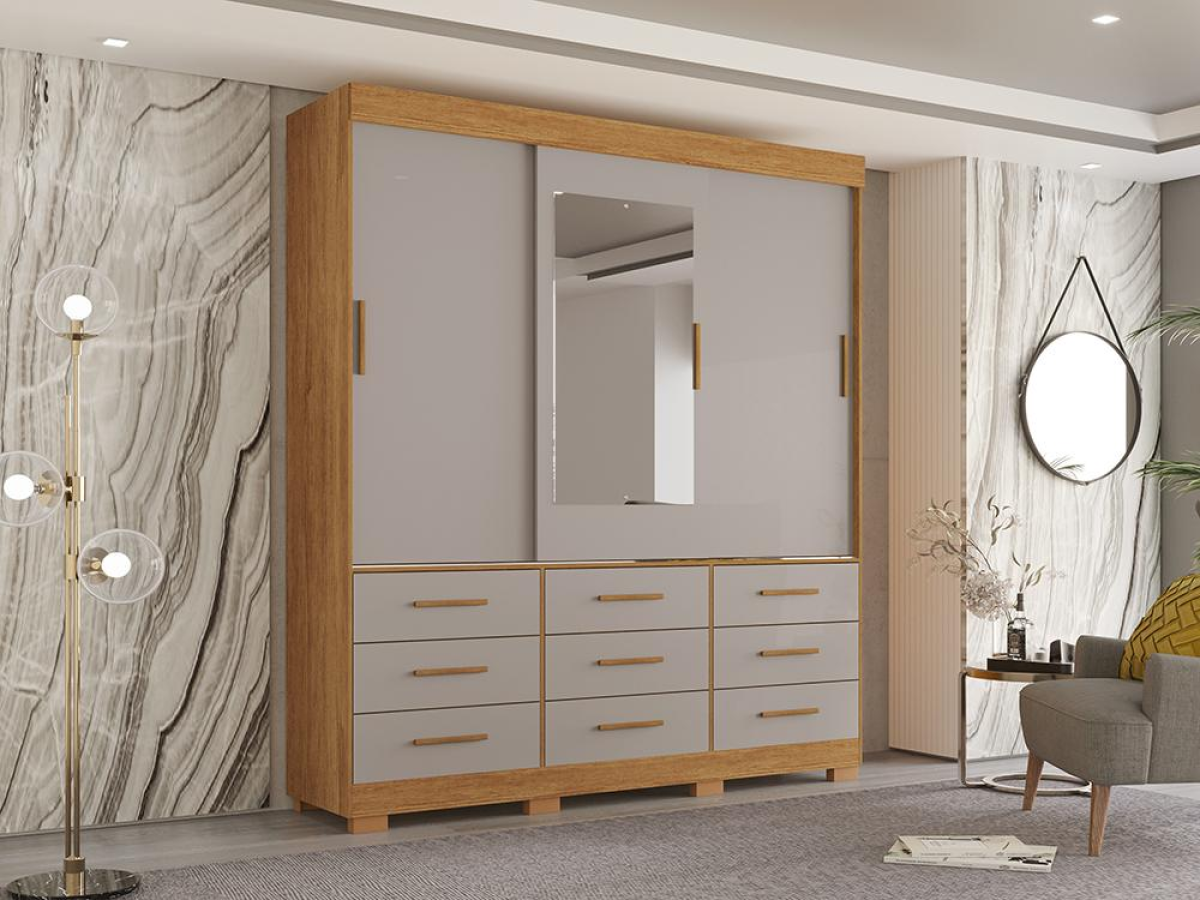 GUARDA ROUPA ACP MAYA 3 PORTAS SOLTEIRO NATURE/OFF 763mm LARGURA 1,80m ALTURA 100%MDP